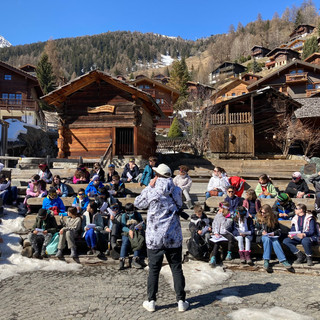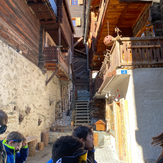 Ce matin, le soleil était toujours en rendez-vous. Une des deux activités du jour était la découverte du vieux village Grimentz qui est entouré de sommets enneigés impressionnants. Avec un petit jeu et par équipe de 3 enfants, nous avons observé les vieux chalets, le moulin et sa scierie, les fontaines ou encore l’ancienne laiterie.