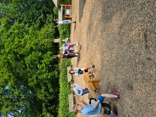 Nous avons donc abandonné nos stylos et nos cahiers pour la plaine de jeux, les balançoires, le trampoline, une partie de foot et un cache-cache géant !